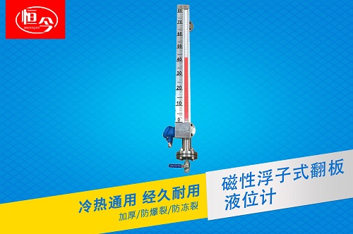 磁性浮子液位計(jì)也稱遠(yuǎn)傳磁翻板液位計(jì),遠(yuǎn)傳磁翻板液位計(jì)結(jié)構(gòu)原理是根據(jù)浮力原理和磁性耦合作用研制而成,當(dāng)被測容器中的液位升降時(shí),液位計(jì)本體管中的磁性浮子也隨之升降,浮子內(nèi)的較久磁鋼通過磁耦合傳遞到磁翻柱指示器,驅(qū)動(dòng)紅、白翻柱翻轉(zhuǎn)180°,當(dāng)液位下降時(shí)翻柱由紅色轉(zhuǎn)變?yōu)榘咨?,?dāng)液位上升時(shí)翻柱由白色轉(zhuǎn)變?yōu)榧t色,面板上的紅白磁翻板交界點(diǎn)即為里面液位的實(shí)際高度。