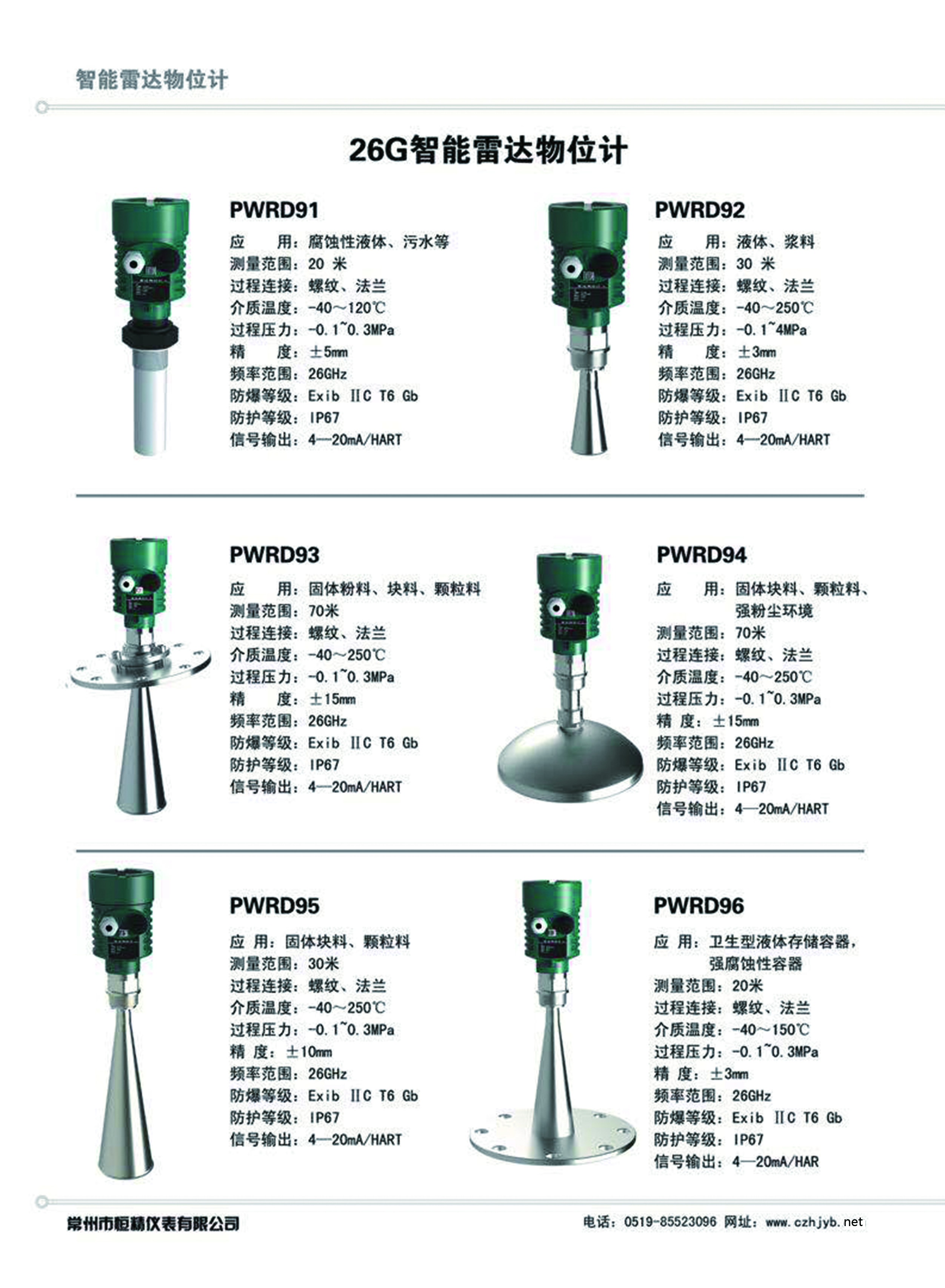 PWRRD91系列傳感器是一種26G高頻雷達式物位測量儀,測量距離可達80米。天線進一步優化,新的快速微處理器可以進行更高速率的信號分析和處理,使儀器能夠用于各種高腐蝕性液體的測量。